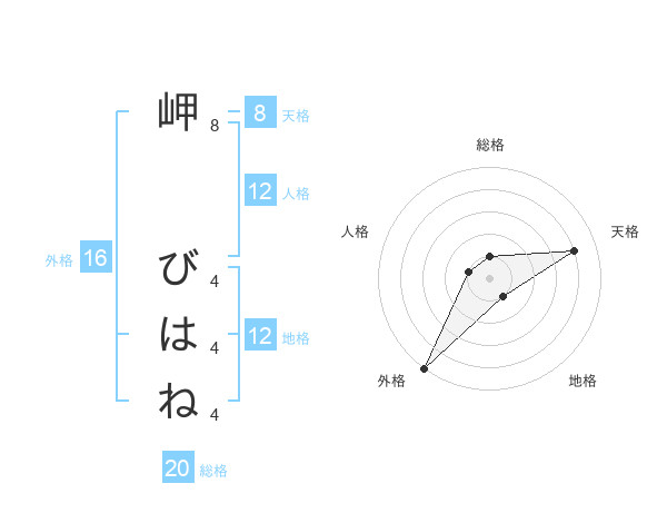 岬 びはねさんの天格は8画の4点!