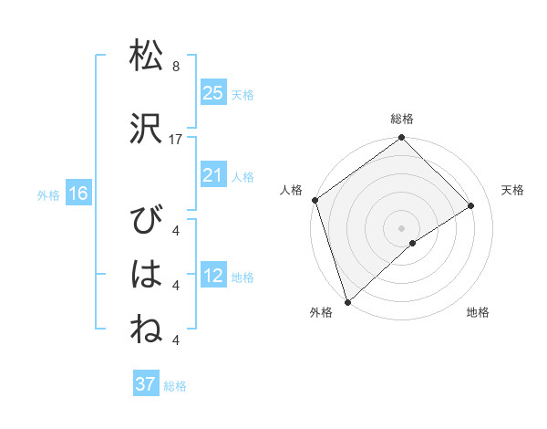 松沢 びはねさんの総格は37画の5点!