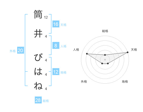筒井 びはねさんを姓名の画数から五運を鑑定