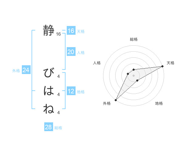 静 びはねさんの総格は28画の1点!