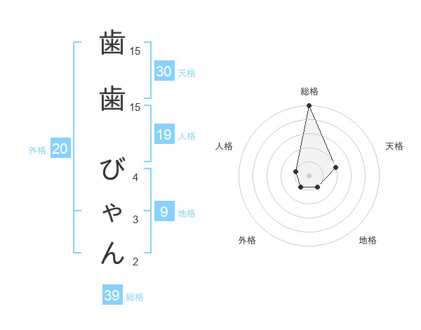歯歯 びゃんさんの総格は39画の5点!