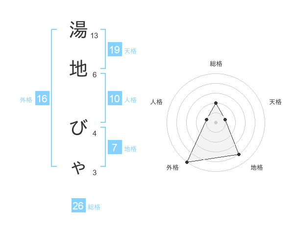 湯地 びゃさんを姓名の画数から五運を鑑定