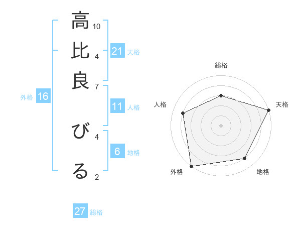 高比良 びるさんの天格は21画の5点!