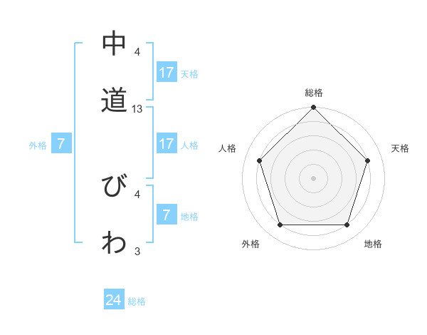 中道 びわさんの天格は17画の4点!