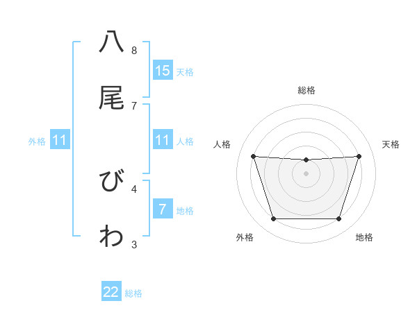 八尾 びわさんの総格は22画の1点!