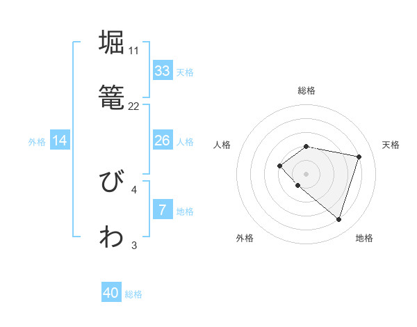 堀篭 びわさんを姓名の画数から五運を鑑定
