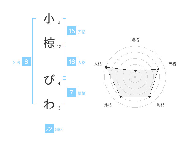 小椋 びわさんの総格は22画の1点!