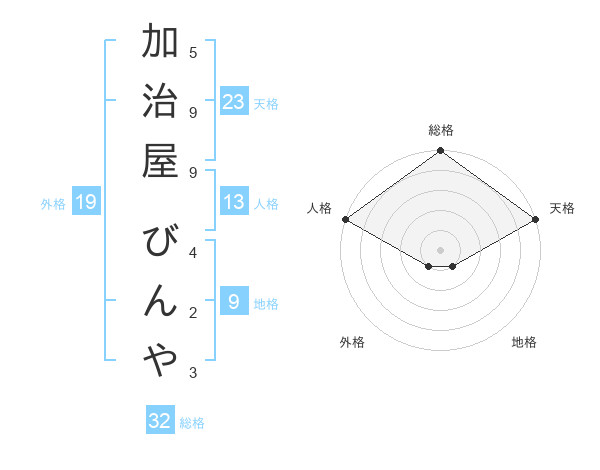 加治屋 びんやさんの総格は32画の5点