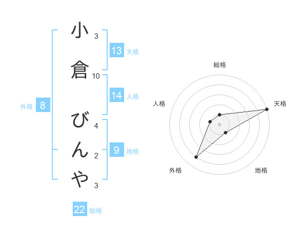 小倉 びんやさんの天格は13画の5点!
