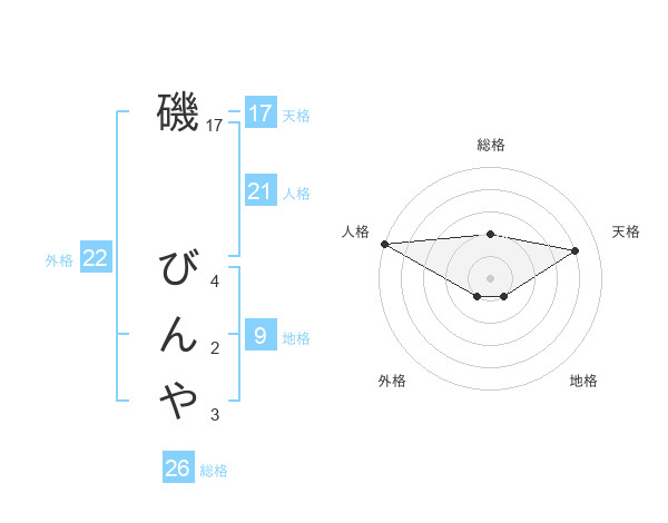 磯 びんやさんの総格は26画の2点!