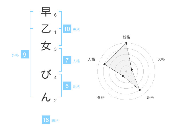 早乙女 びんさんを姓名の画数から五運を鑑定
