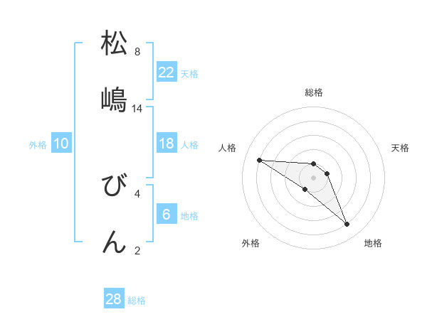 松嶋 びんさんを姓名の画数から五運を鑑定