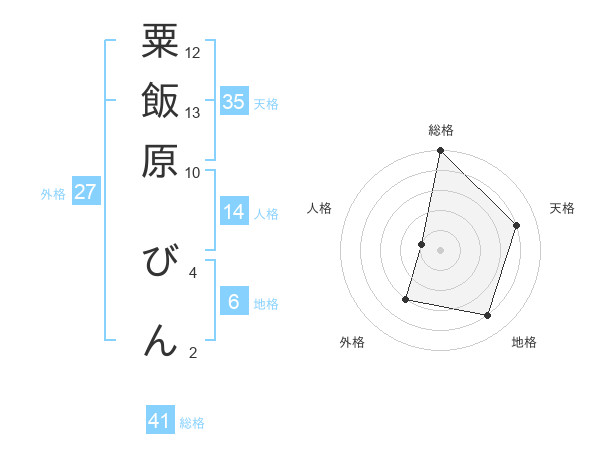 粟飯原 びんさんの総格は41画の5点!