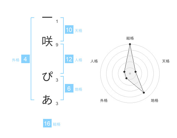 一咲 ぴあさんを姓名の画数から五運を鑑定
