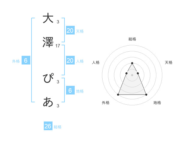 大澤 ぴあさんを姓名の画数から五運を鑑定