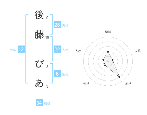 後藤 ぴあさんを姓名の画数から五運を鑑定