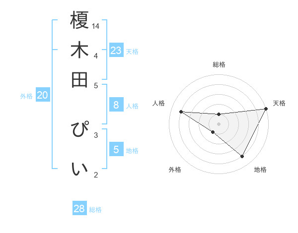 榎木田 ぴいさんを姓名の画数から五運を鑑定