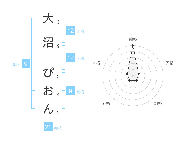 大沼 ぴおんさんを姓名の画数から五運を鑑定