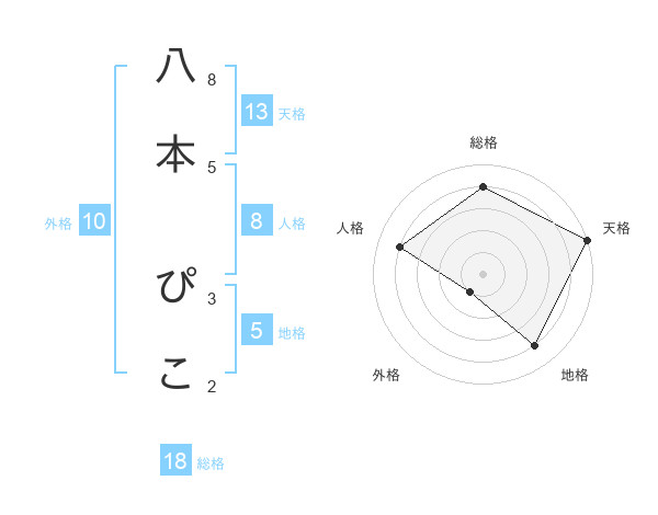 八本 ぴこさんを姓名の画数から五運を鑑定