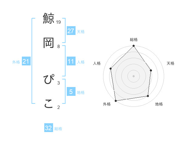 鯨岡 ぴこさんを姓名の画数から五運を鑑定