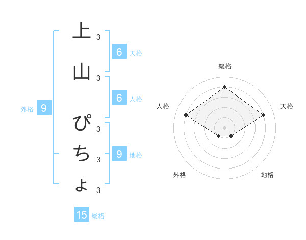 上山 ぴちょさんを姓名の画数から五運を鑑定