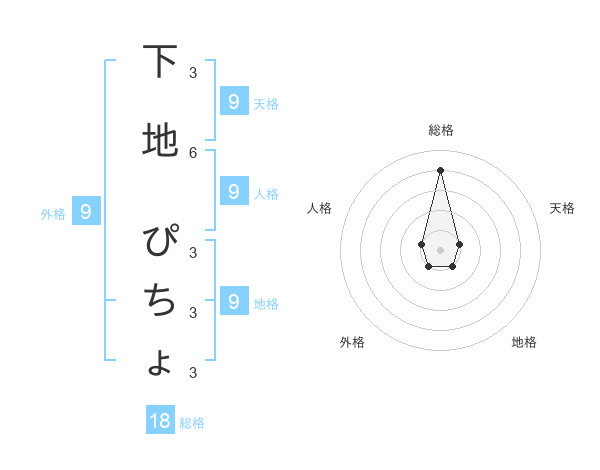下地 ぴちょさんを姓名の画数から五運を鑑定