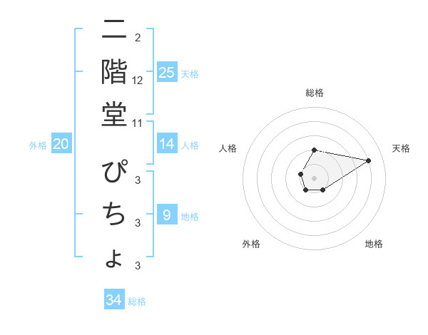 二階堂 ぴちょさんを姓名の画数から五運を鑑定