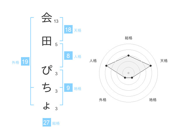 会田 ぴちょさんを姓名の画数から五運を鑑定