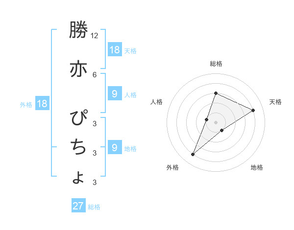 勝亦 ぴちょさんを姓名の画数から五運を鑑定