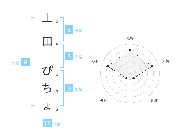 土田 ぴちょさんを姓名の画数から五運を鑑定