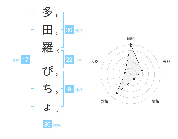 多田羅 ぴちょさんの外格は17画の4点!