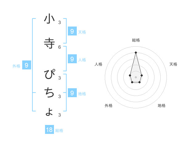 小寺 ぴちょさんの天格は9画の1点!