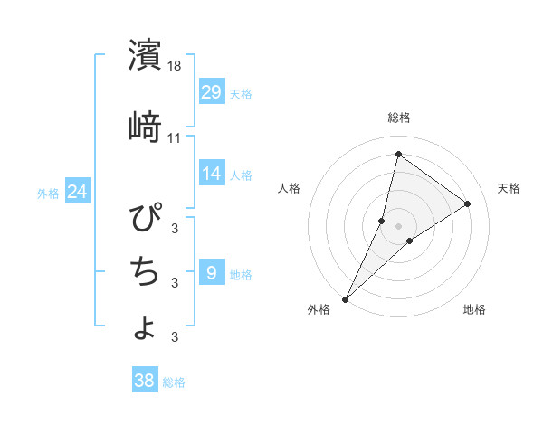 濱﨑 ぴちょさんを姓名の画数から五運を鑑定