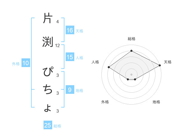 片渕 ぴちょさんを姓名の画数から五運を鑑定