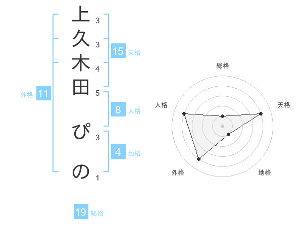 上久木田 ぴのさんの天格は15画の4点!