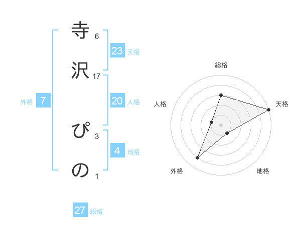 寺沢 ぴのさんを姓名の画数から五運を鑑定