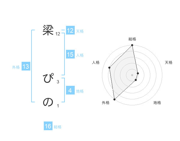 梁 ぴのさんの外格は13画の5点!