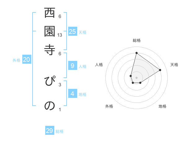 西園寺 ぴのさんの総格は29画の4点!