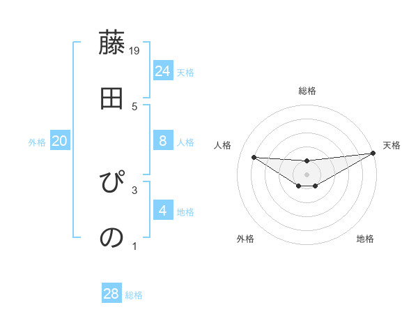 藤田 ぴのさんの天格は24画の5点