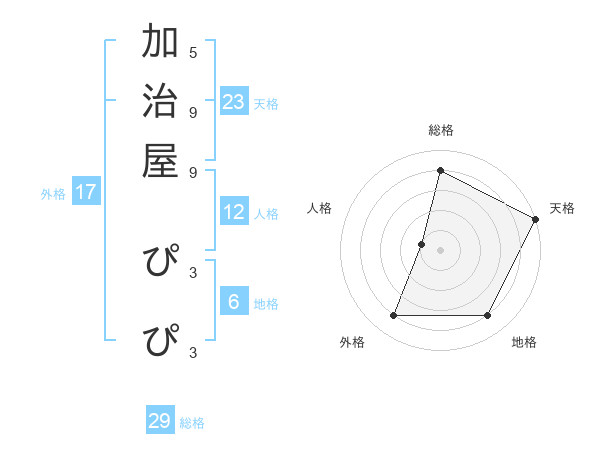 加治屋 ぴぴさんを姓名の画数から五運を鑑定