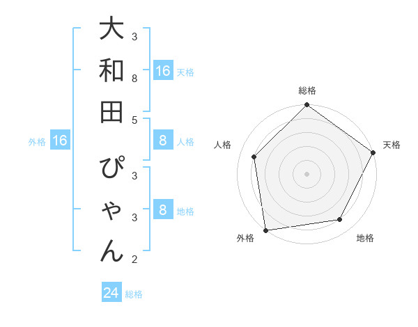 大和田 ぴゃんさんの天格は16画の5点!