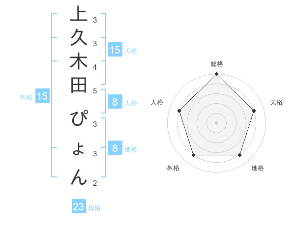 上久木田 ぴょんさんを姓名の画数から五運を鑑定