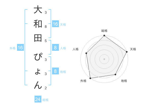 大和田 ぴょんさんを姓名の画数から五運を鑑定