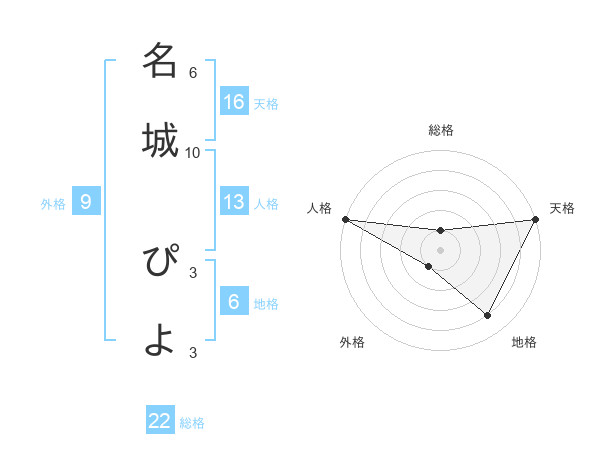 名城 ぴよさんの総格は22画の1点!
