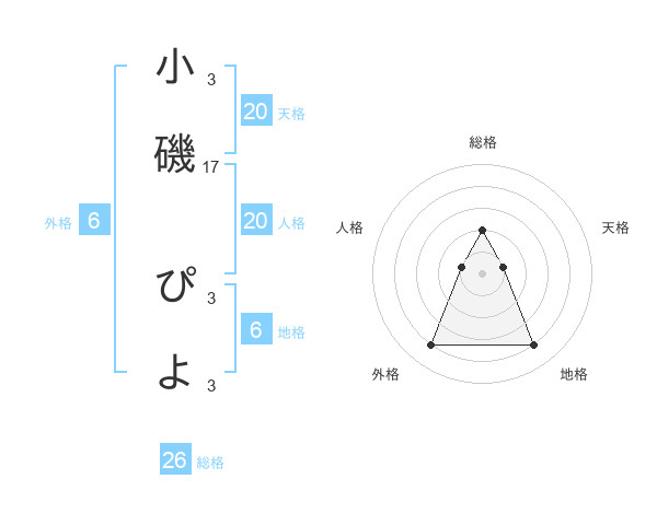 小磯 ぴよさんの総格は26画の2点!