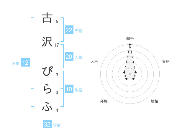 古沢 ぴらふさんを姓名の画数から五運を鑑定