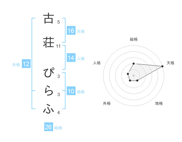 古荘 ぴらふさんを姓名の画数から五運を鑑定