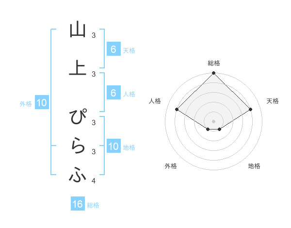 山上 ぴらふさんを姓名の画数から五運を鑑定