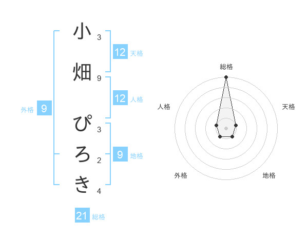 小畑 ぴろきさんを姓名の画数から五運を鑑定