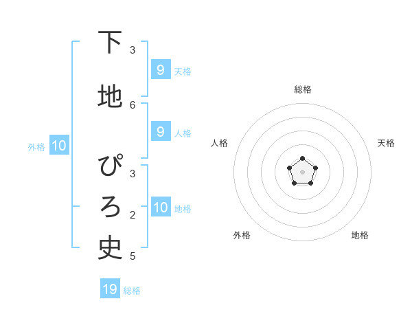 下地 ぴろ史さんを姓名の画数から五運を鑑定